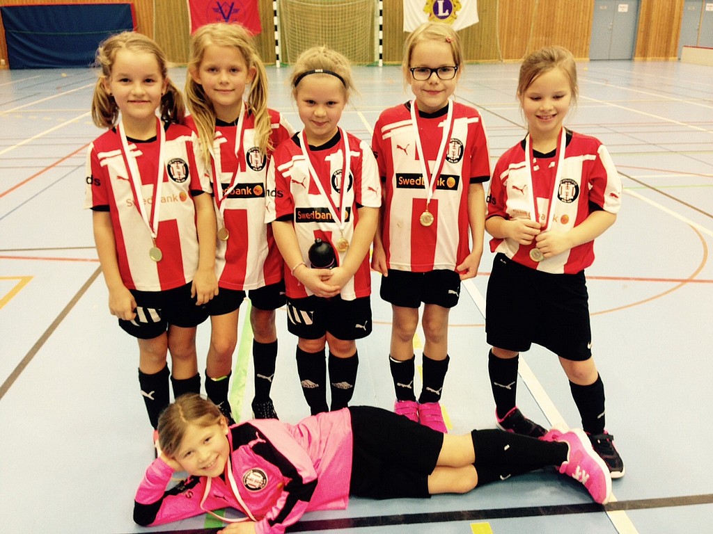 Och här kommer lag Vit! Sex pigga och glada spelare som bjöd publiken på  snygga sulor, klackar och dribblingar under sina fem matcher! Månne har de också sneglat på 08:ornas träningar för minsann uppvisade de också väggspel. Roligast hade nog flickorna kanske ändå  tillsammans med storebror Bergendahl som hjälpte till med lekar mellan matcherna!  Tack för en härlig Cup allihopa, föräldrar, syskon och spelare!